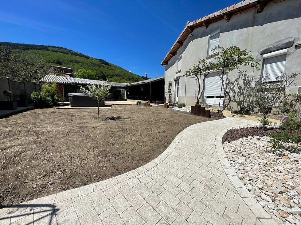 Nous vous proposons un large choix de matériaux durables et esthétiques : pierre naturelle, béton, pavés, graviers stabilisés, résine drainante, dalles alvéolaires ou béton désactivé. Chaque projet est étudié selon votre environnement, vos goûts et votre budget, afin d’obtenir un résultat unique et harmonieux.